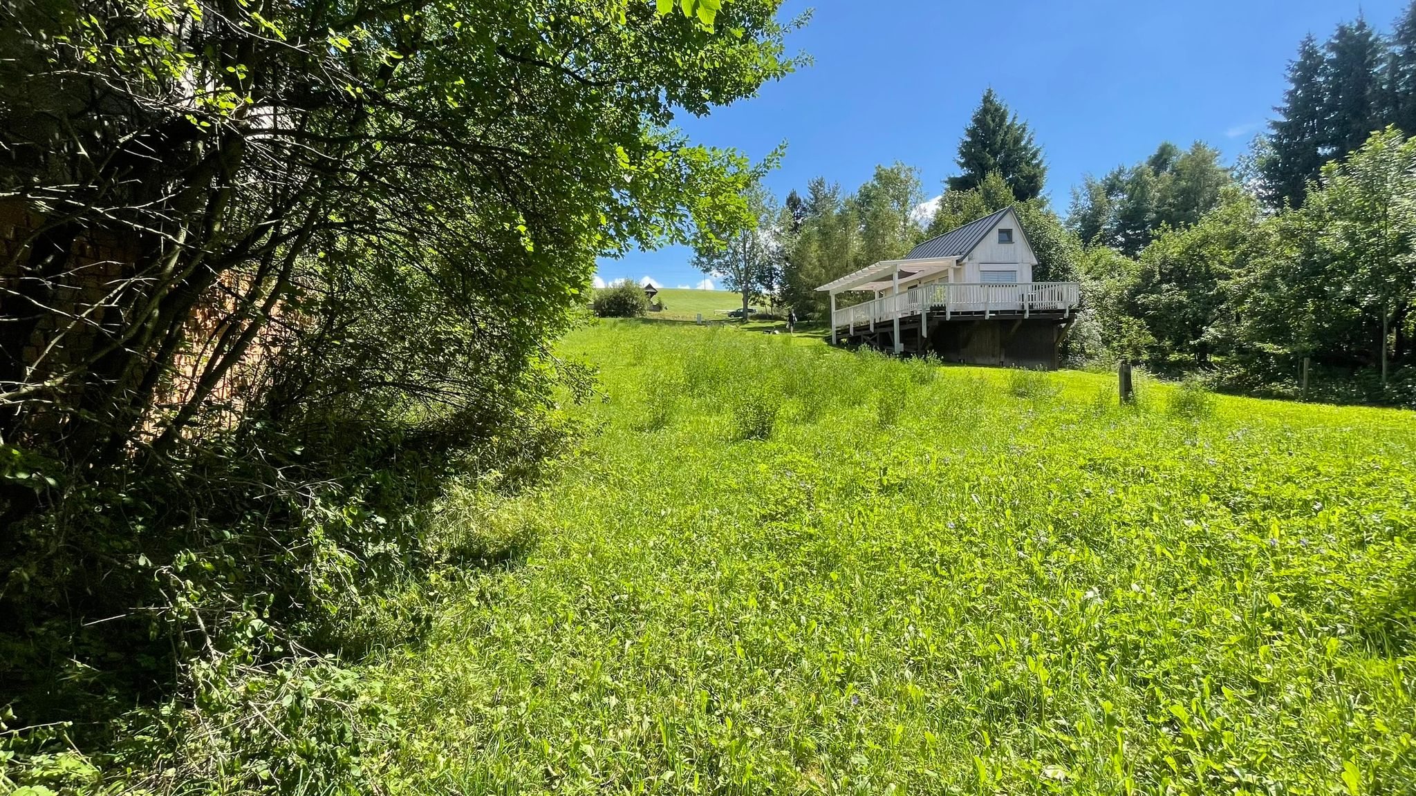 Pozemok má mierny sklon, no vďaka tomu ponúka krásny výhľad a atmosféru pokoja – ideálne miesto na oddych či rekreáciu.